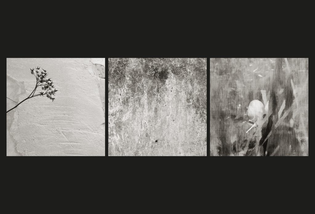 Serie s/t. Tríptico grises A3+ (329×483 mm), montaje sobre cartón negro.