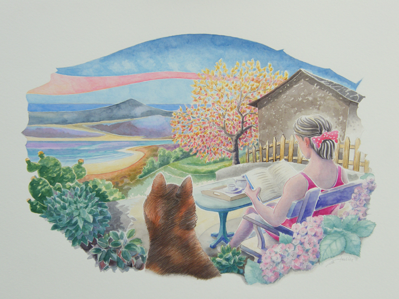 Lápices acuarelables y acuarela sobre contracolado Canson VergeGalery, 60 x 80 cm.