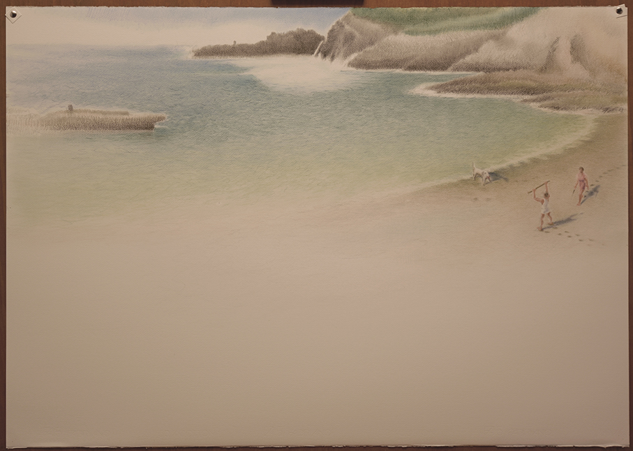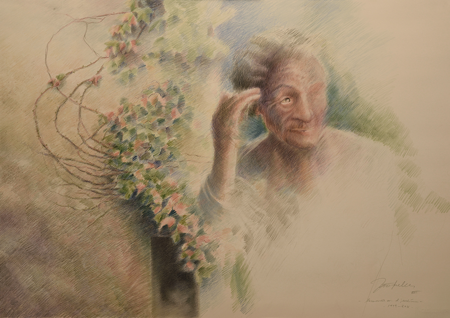 Lápices de color (polícromos) sobre papel Fabriano Design 50% algodón, 70 x 100 cm.